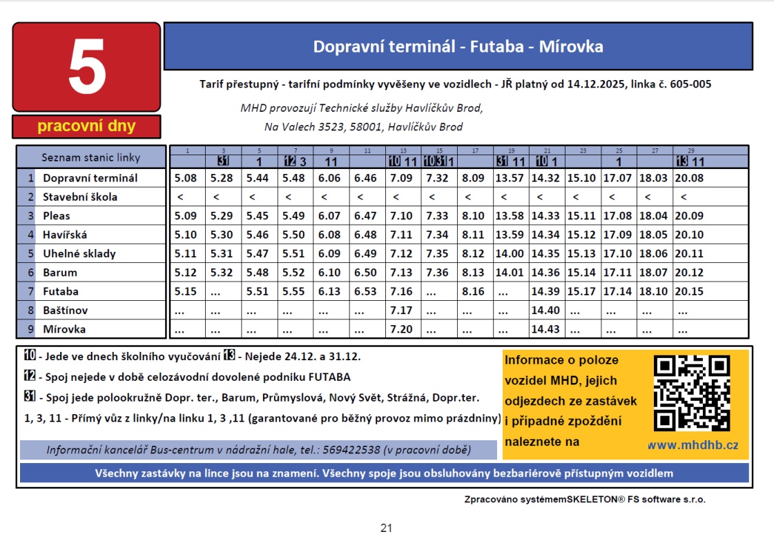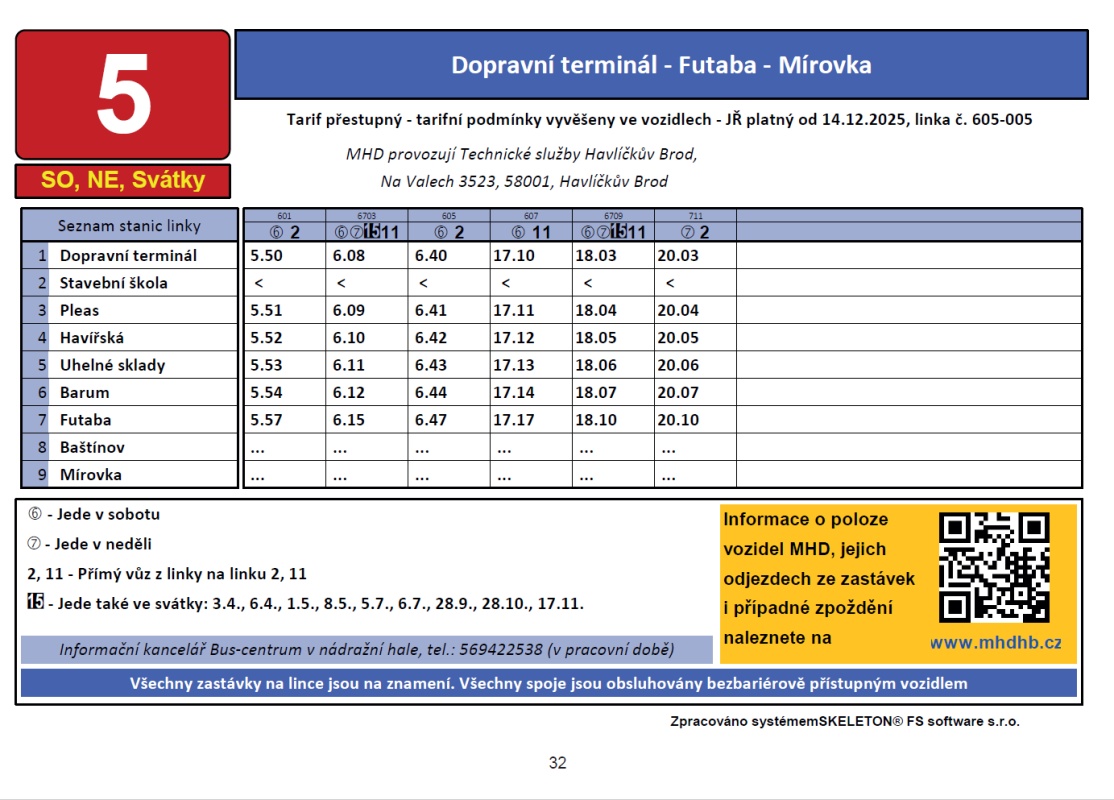 linka č. 5 od 14.12.2025